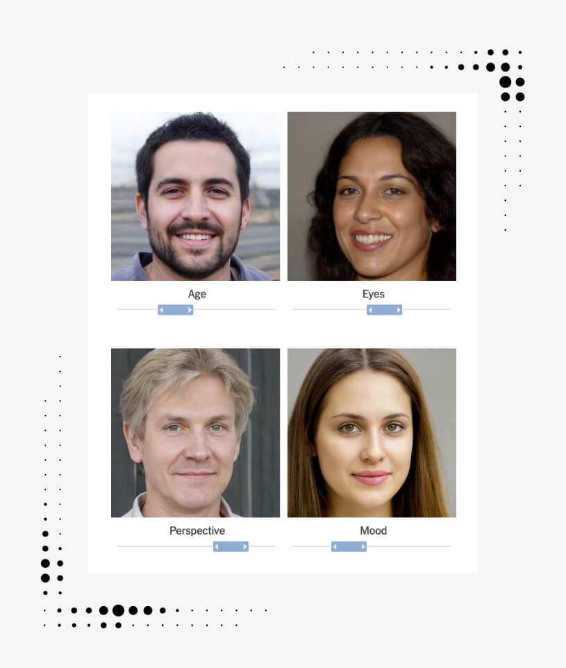 The New York Times recently ran a story about businesses that sell ‘fake people’, featuring a series of algorithmically generated, but very real-looking, faces. As you scroll, they morph into one another in a rather unsettling way.