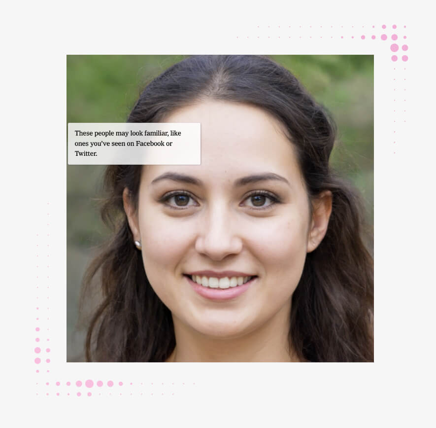None of them are faces of people who ever lived. All of them were created by a kind of neural network called a GAN, or Generative Adversarial Network, built by computer graphics company Nvidia.