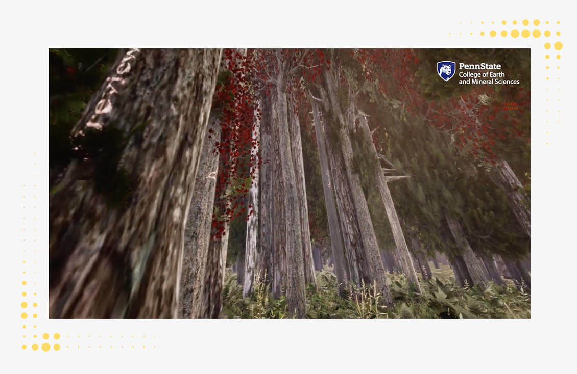 A fake forest, a bank of ecological data and a variety of modelling scenarios combine to impressive effect in Penn State University’s VR Forest – built to demonstrate what a typical Wisconsin forest might look like in 2050 in the context of climate change.