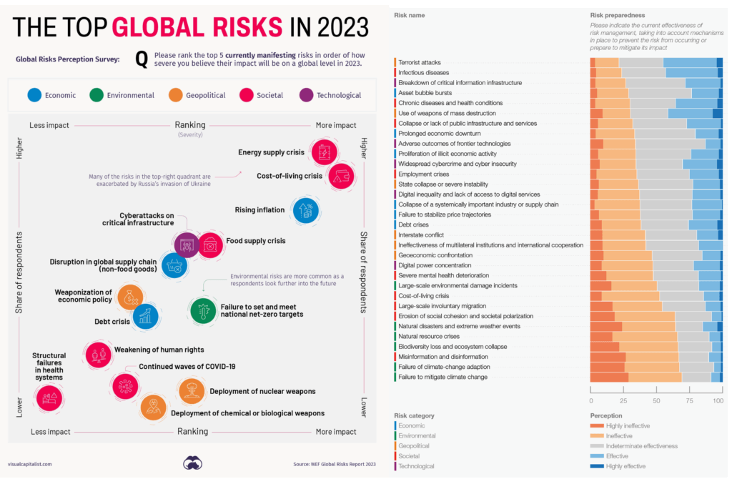 • Intro: My pick this month is from the creatives at Visual Capitalist, with two visualisations that look at the top global risks in 2023. The findings are based on the recent Global Risks Report produced by the World Economic Forum.