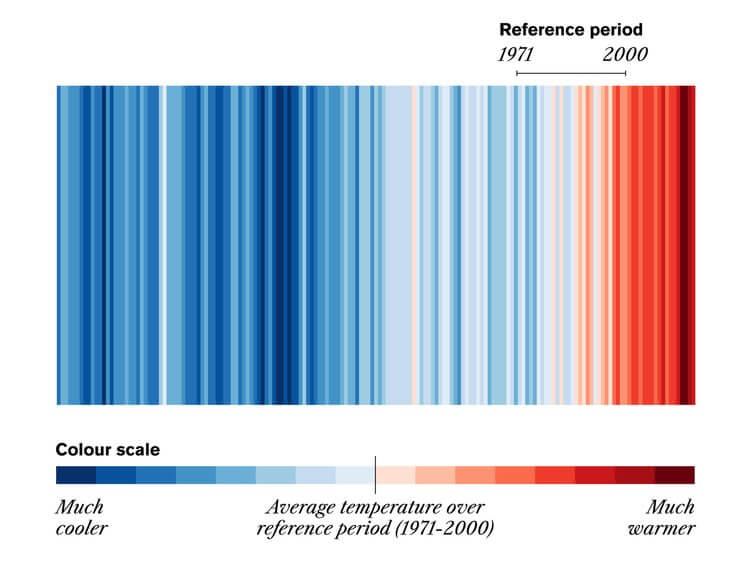 • Why it matters: Climate change is a complex and multifaceted issue, but temperature trends are one of the most important indicators of its impact.Overall, the Climate Stripes visualisation matters because it helps to communicate the urgency and scale of the problem of global warming, and it provides a powerful tool for raising awareness and inspiring action to address the issue.