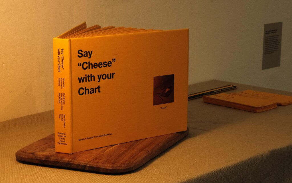 • Intro: Based on the Financial Times Visual Vocabulary, this Information is Beautiful Awards gold-winning project playfully organises 74 charts into a book inspired by the concept of cheese – specifically how we prompt people to say ‘cheese’ before taking a photo. The book aims to help readers feel good about their chart choices while serving as an accessible format for people to develop their data literacy skills.