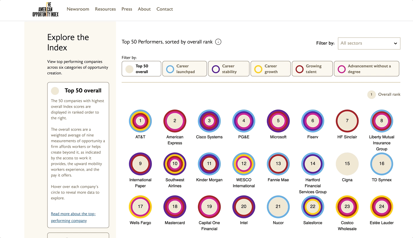 American Opportunity Index. This groundbreaking study sought to answer the question: Which of America’s largest companies are providing workers with the most opportunity?