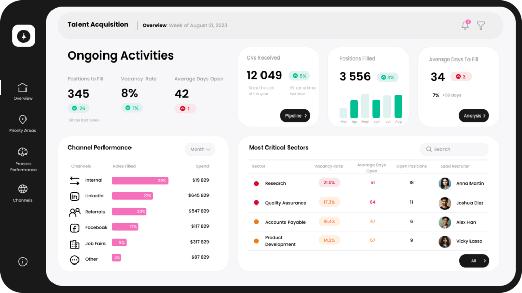 Today, the dashboard is a key resource for the talent acquisition team. It helps them report on their operations, prioritise their efforts, and assess their overall performance. The team still brings improvements to it on a continuous basis, and my colleague and I are currently transferring development activities to their internal IT team to enable them to become self-sufficient.