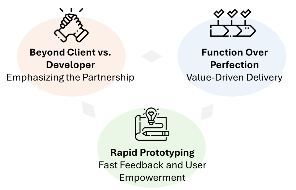There needs to be a partnership between the business and technical delivery teams that goes beyond the ‘client vs. developer’ mindset. - Function over perfection: Value-driven delivery