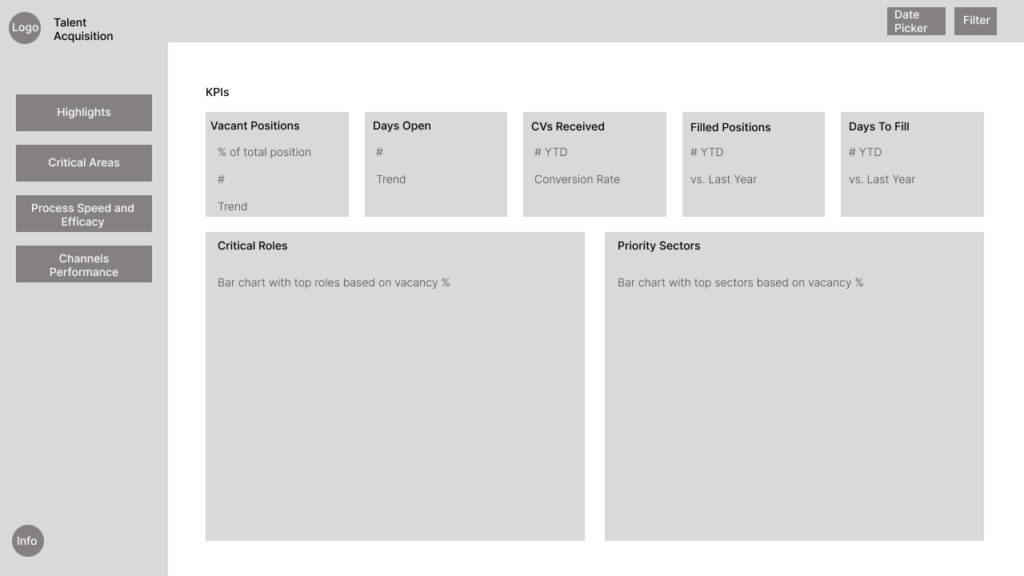 By Tuesday of the following week – within a week of receiving the initial brief – my colleague and I released the first functional sections of the dashboard to the TA leads. During that morning meeting, we reviewed the operational parts of the dashboard, allowing them to begin exploring, while highlighting the sections that were still under development. The initial release impressed the TA leads, and the TA Director and CHRO were relieved to have a working tool in their hands. This was a case where rapid prototyping wasn’t only good for us to capture feedback, but a winning factor in gaining the user’s confidence and building our partnership.