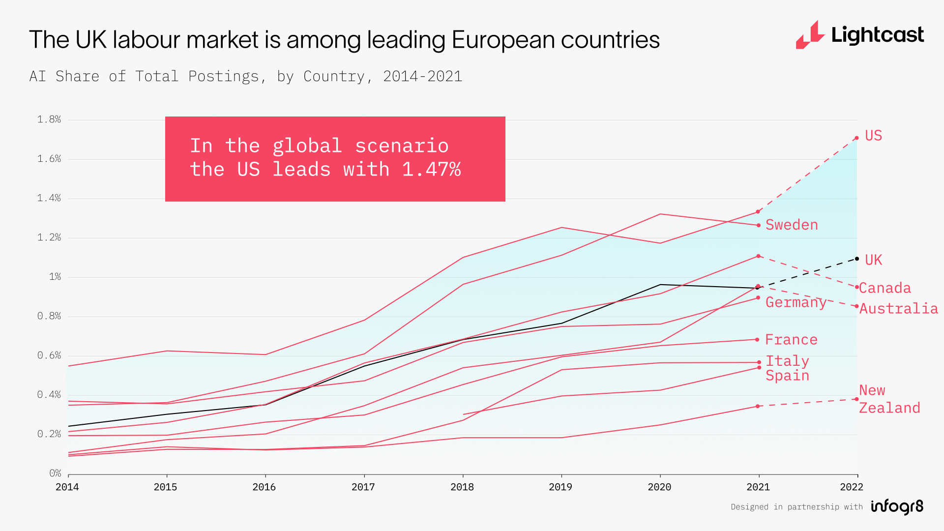 • As long standing partners with Lightcast, we created a series of dynamic data visualisations enabling data storytelling that brought their comprehensive data to life with our creative expertise.