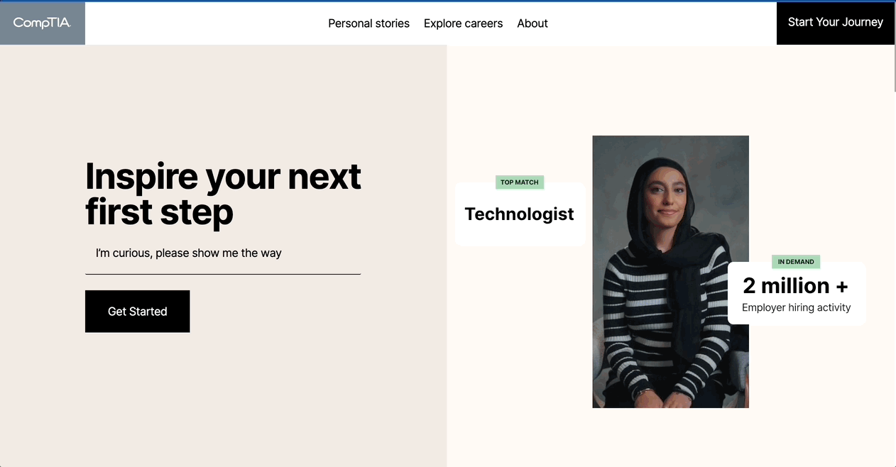 CompTIA wanted to help and connect people with everything they need to learn what it’s like to work in tech. A new means of exploring careers without the complexity of traditional career sites. Because working in tech doesn’t mean Silicon Valley. It’s far more diverse and far-reaching.