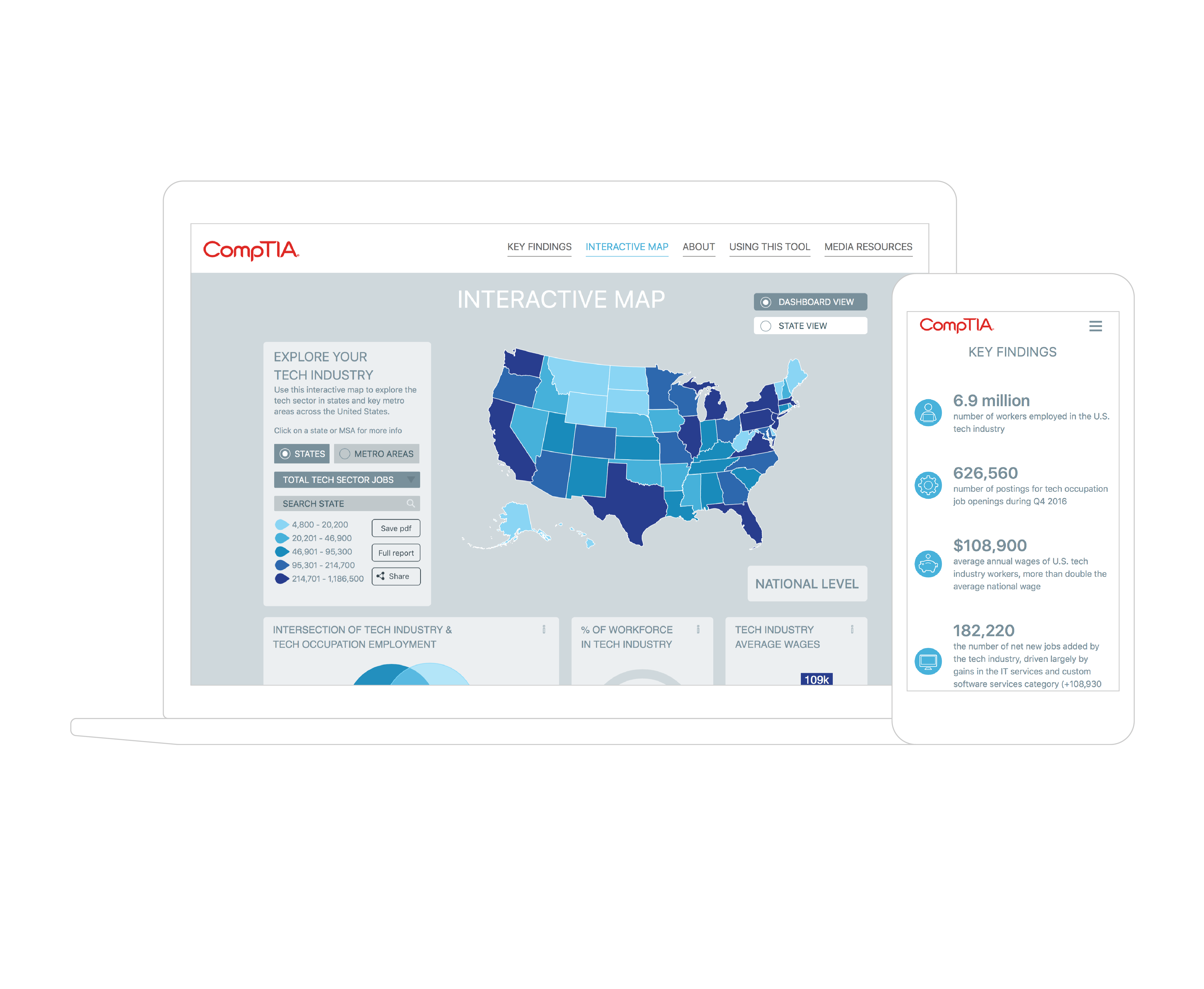 • CompTIA wanted to create a definitive guide to national, state, and metropolitan area tech sector and tech workforce analytics.