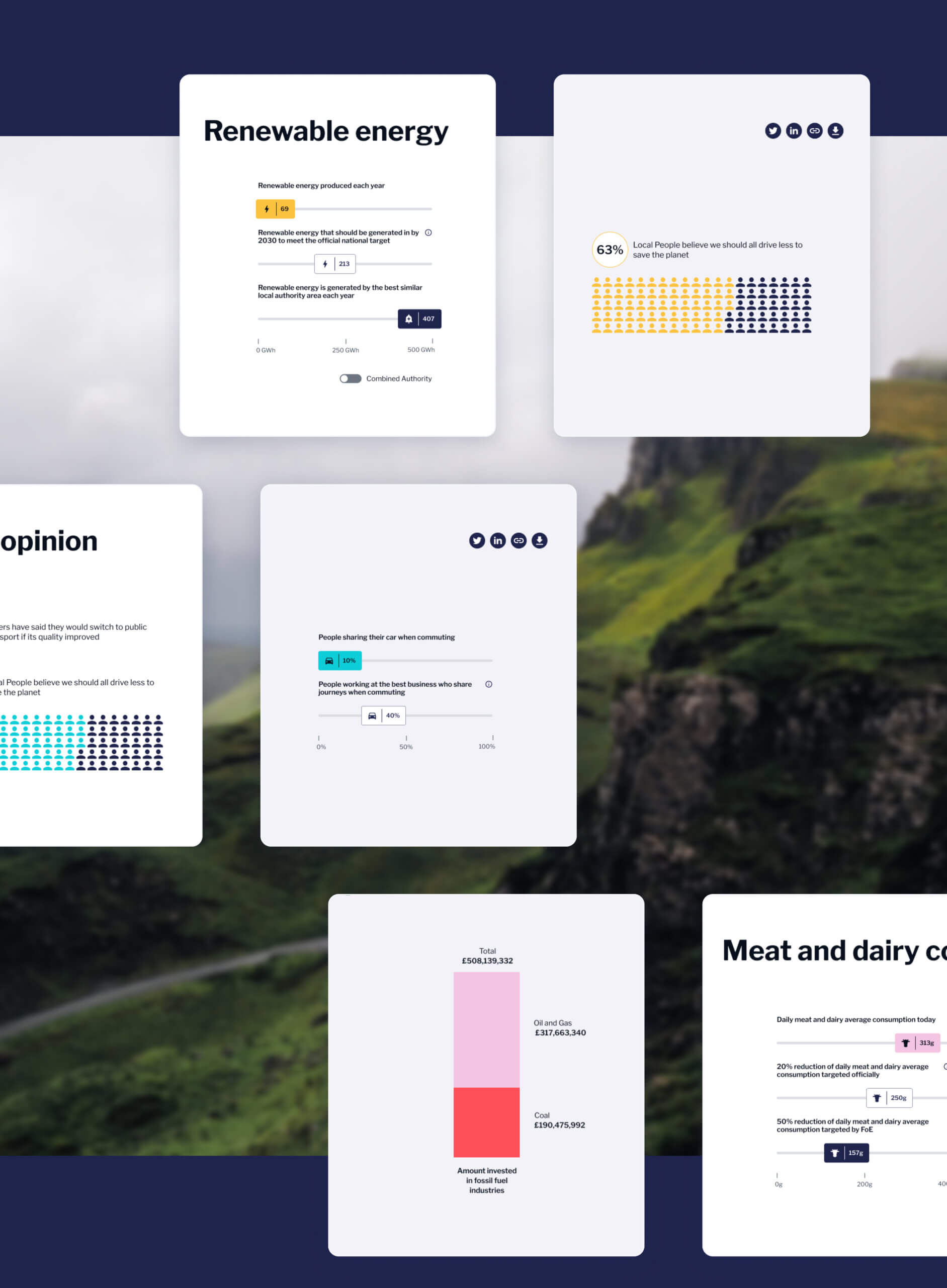 Friends of the Earth created a new way of engaging their membership groups and encouraging targeted action at a localised level. They’d already sourced data across 80 different metrics, covering a diverse range of topics from energy to housing, transport to waste and society to nature. A functional MVP was in place, but this fell short on some of their key goals: to make ‘Near You’ an engaging, easily digestible, visually appealing campaigning tool, that inspired action.
