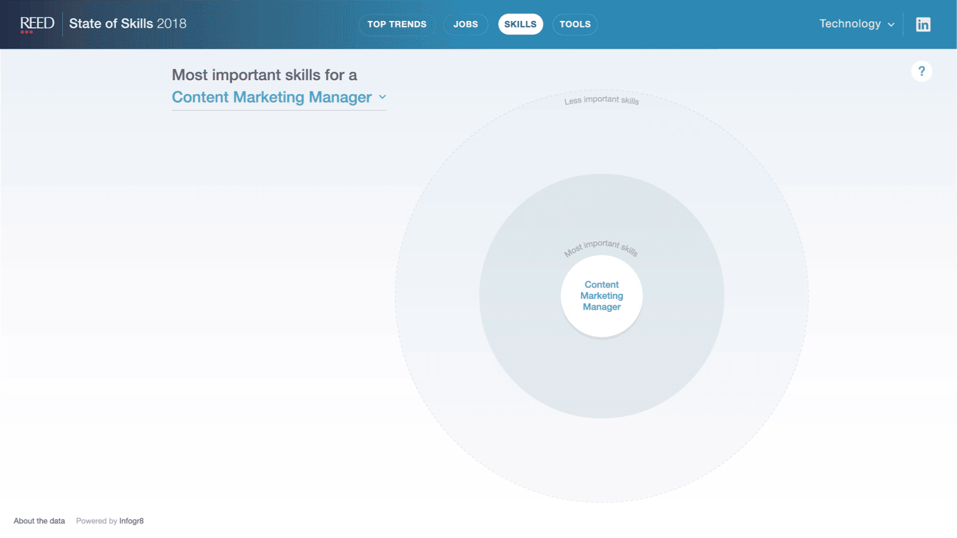 State of Skills 2018 – An exclusive interactive report allowing users to explore insight into the roles, skills and tools that drive REED’s focus industries. The new State of Skills interactive is the first interactive report of its kind within the recruitment industry. Recruitment trend white papers and reports are nothing new. Creating an interactive experience allowing users to explore the data themselves, as well as take away expert insight and commentary is however the first of its kind. We’re proud to have partnered with the client to develop a rounded solution that would engage both clients and customers directly, as well as help provide stimulus for consultants to use in conversations.