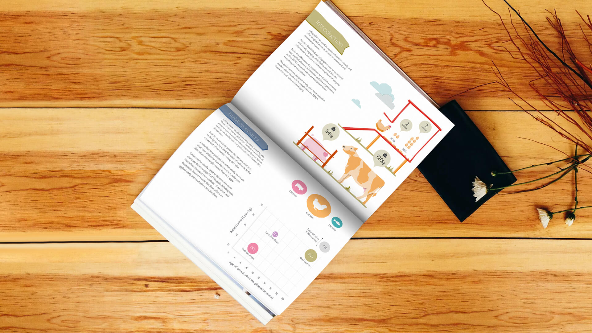 Upon establishing the overarching style infogr8 assessed the types of information design principles that the RSPCA assured would need to express both existing and future information design challenges, through research of previous infographics, data sets and stakeholder involvement. Each section of the guidelines deals with a different aspect of information design with guides for colour, typography, layout and step-by-step instructions for the creation of the different charts and graphs.