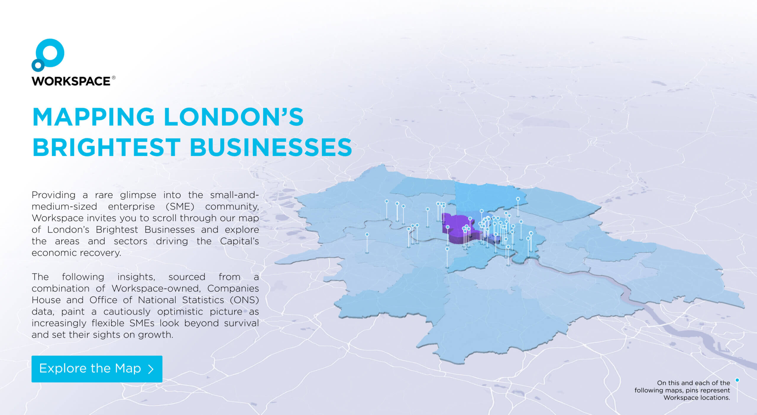 Workspace is the home of London’s Brightest Businesses with over 60 co-working spaces in the Capital. But Workspace provides more than just a place to work, they support SMEs with the opportunity to collaborate, network and grow their business. The challenge was to demystify what is happening in the current London SME climate, through rich data points in order to share the stories of SMEs in the Capital with investors, members and the wider community.