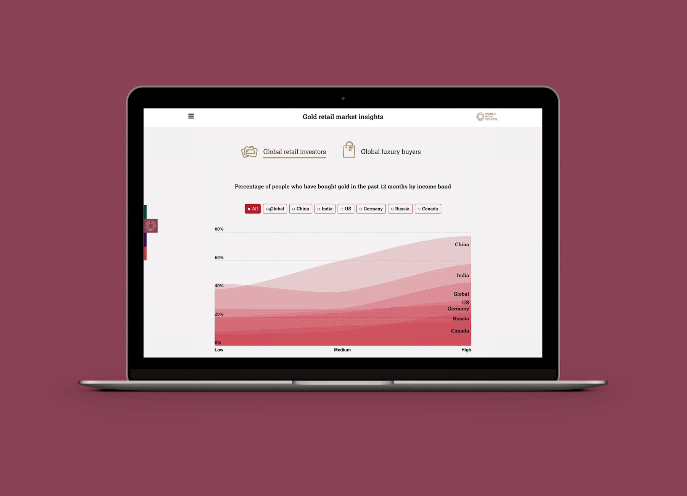 A Gold Council first, an intuitive, bilingual, mobile-first web experience that genuinely works as well on mobile as on large screens – no mean feat when presenting rich insights