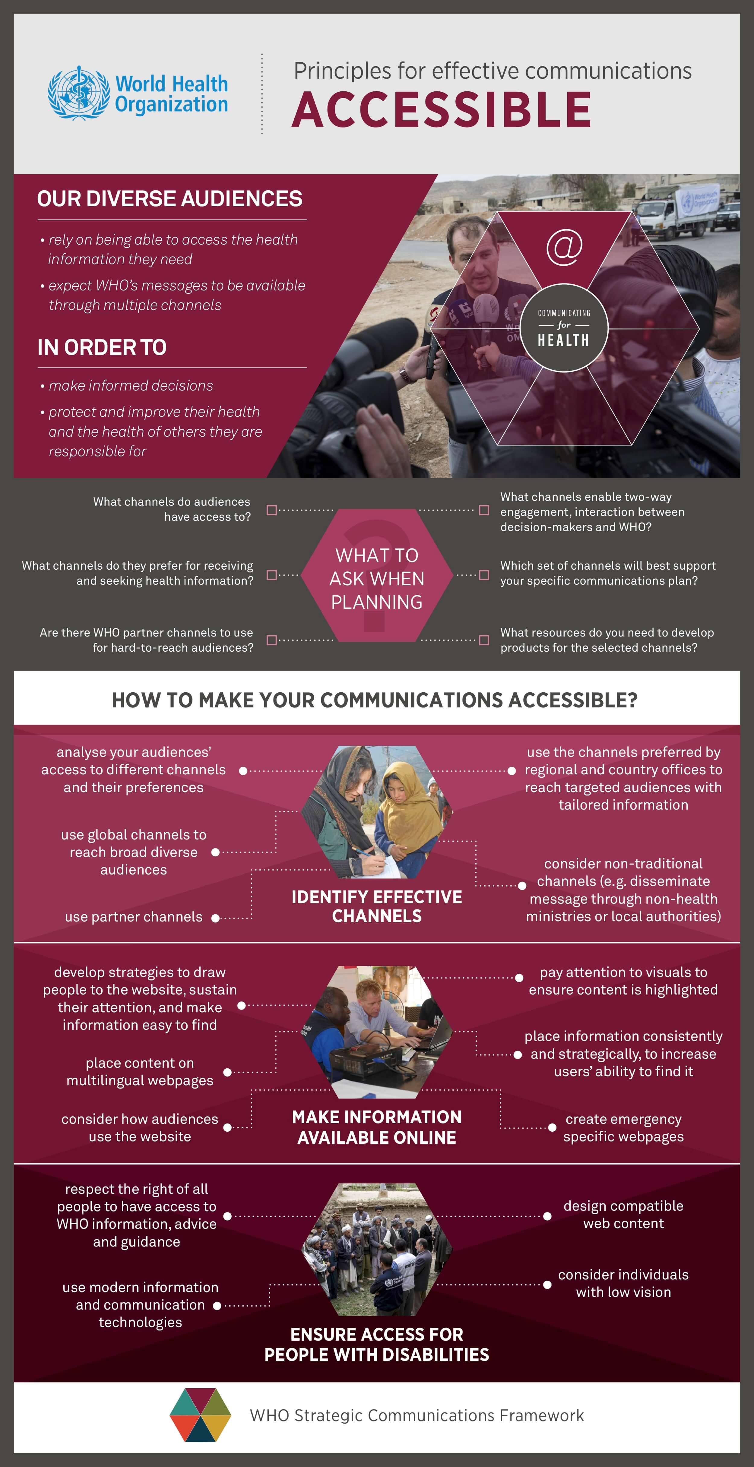 WHO’s communication framework is built around six principles: accessible, actionable, credible and trusted, relevant, and timely and understandable. infogr8 was tasked to develop this existing framework into visual assets that are exciting and easy to digest for all their partners.