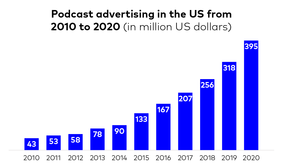 • Ad revenue in the US from podcasting is projected to exceed $300 million in 2019