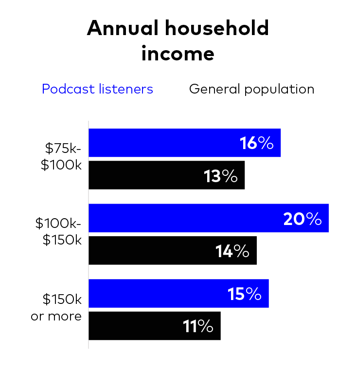 Building on this, 83% of those who listen to podcasts in the US earn above the national average, which is probably news enough to tempt advertisers of all shapes and sizes.