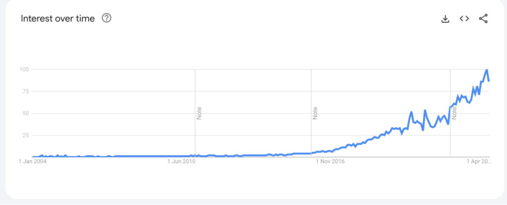 Take the role of an influencer. It didn’t really exist until 2014. The data backs this up, too. The term did not appear in the public lexicon until early 2010s when search term interest started to spike. Today, it’s a booming sector in its own right, with estimates pointing to an industry worth $21.1 billion as of 2023. This is a significant increase of 29% from $16.4 billion the previous year.