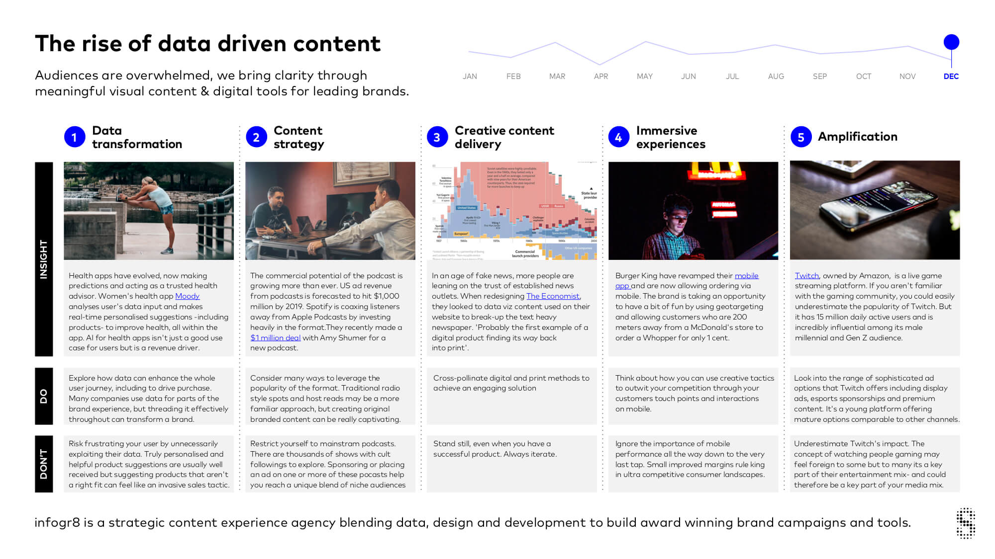 From tailored health improvement suggestions on the go to app-based fast food warfare in America, here’s our final edition of the year showing the emerging trends from the world of data-driven content…