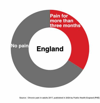 Figure 2: Donut chart representing 1 in 3 people suffering from chronic pain in England. From ‘The invisible persistence of pain’ infographic. Designed by the author.