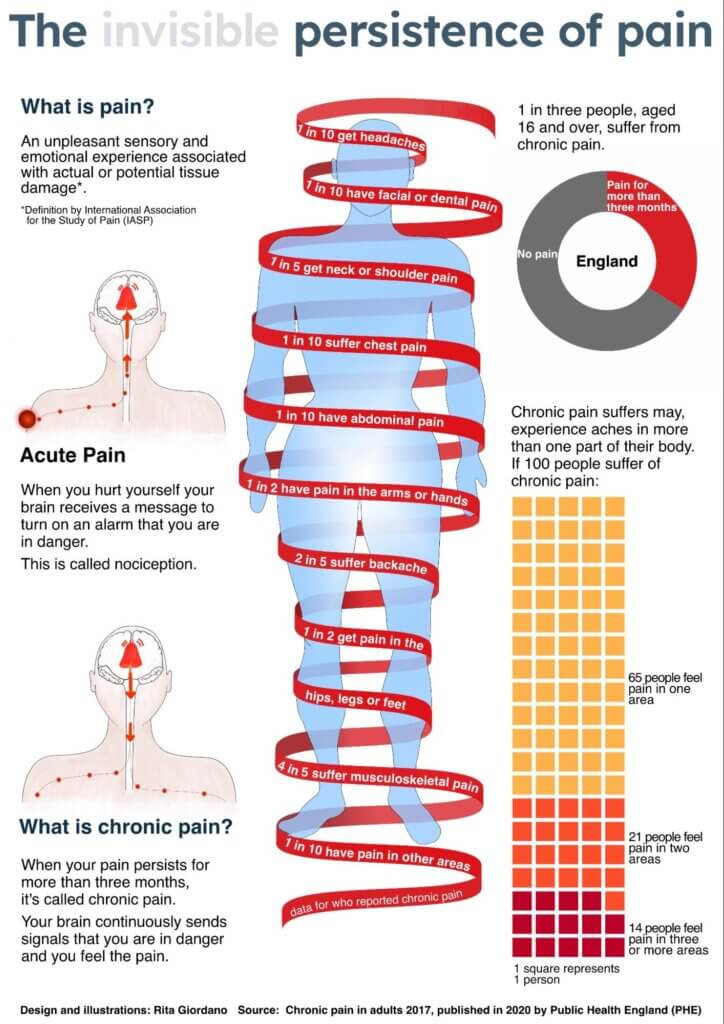 Figure 7: The final infographic ‘The invisible persistence of pain’. Designed by the author.