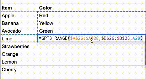 For example, how would you write a spreadsheet formula that can calculate the colour of different fruits? We can’t do that in a standard way.