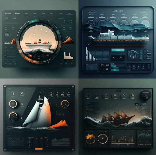 For example, if we ask these tools to ‘generate a dashboard that includes a ship, waves and KPI dials’, we end up with something like the following in a matter of seconds: